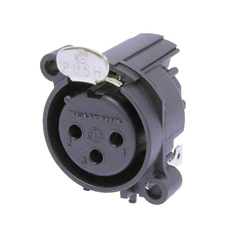 3 pólusú XLR aljzat vízszintes nyákhoz, külön GND és ház, retesszel, A ház