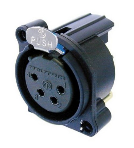4 pólusú XLR aljzat vízszintes nyákhoz, földelés nélkül, retesszel, A ház