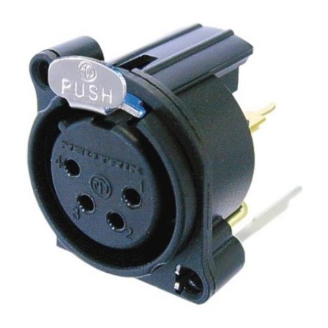 4 pólusú XLR aljzat függőleges nyákhoz, földelés nélkül, retesszel, A ház