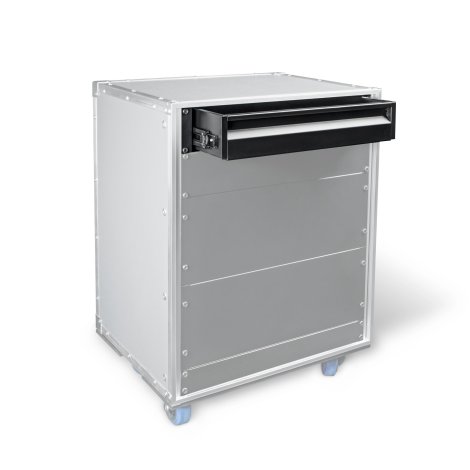 Az Ergo kedvező árú rackbe építhető fiók 1,5 mm-es acéllemezből készült, könnyen kezelhető és ergonomikus kialakítású. Süllyesztett húzófüllel rendelkezik, amely végigfut a fiók teljes szélességében, kényelmes, 1,5 kg erővel húzásra nyíló és tolásra záródó zármechanizmust kapott. A fiók felülete porfestett selyemfényű fekete színű, 20 kg-mal terhelhető. Simán futó görgős oldalsíneken mozgatható, illetve szükség esetén elölről kivehető.