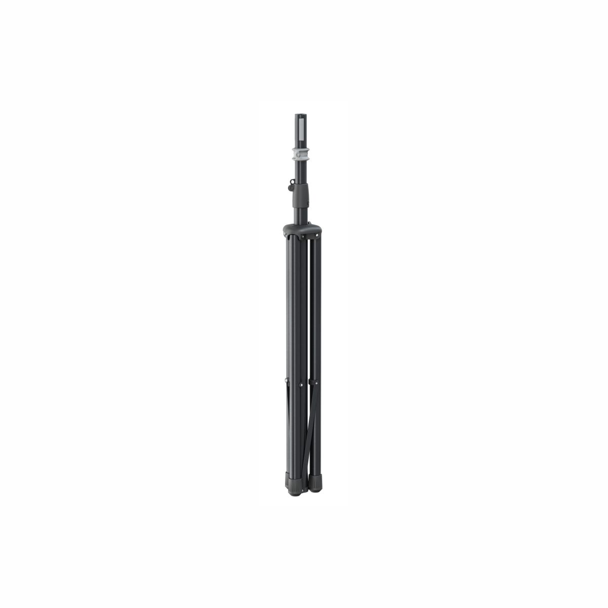 A szabadalmaztatott feszítő tüske gyorskioldó rögzítővel biztosítja a hangfal szoros illeszkedését. A műanyag sín biztosítja a hangfal és a cső közötti rezgésmentes kapcsolatot. Az acél állvány magassága 1417-2117 mm között állítható, biztonsági kampóval biztosítható és csavarral rögzíthető a rezgésmentes és szilárd illeszkedés érdekében. További jellemzői közé tartozik a kihúzás elleni védelem a hosszabbítócsőhöz, a beépített rezgéscsillapító és a tartós porfestés.