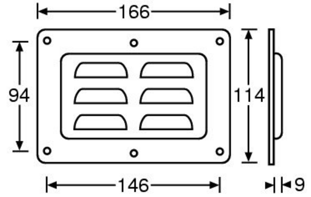 Süllyesztett szellőző tálca vízszintes kopoltyúzással.