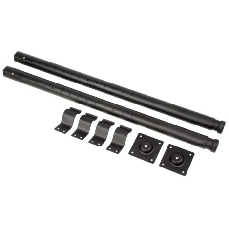 2 darab asztalláb, 730 és 1180 mm között állítható magassággal, acél szerelőlapokkal és a lábakat becsukott állapotban a fedélhez rögzítő bilincsekkel.