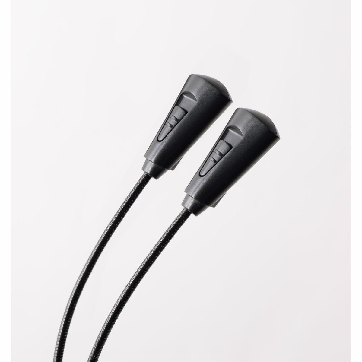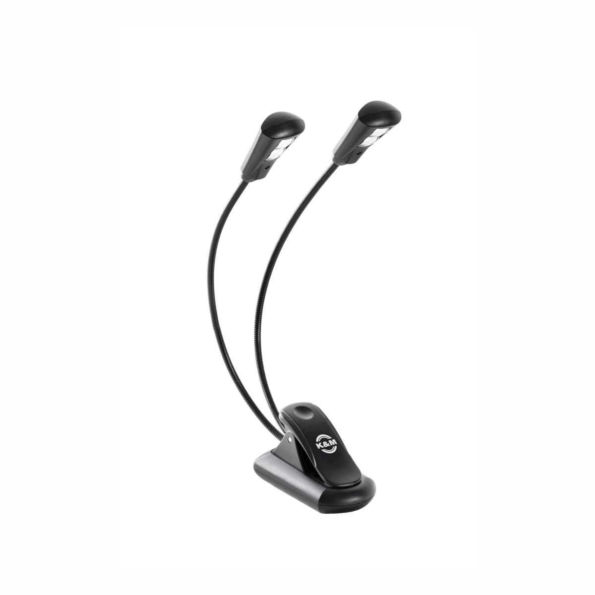 Sokoldalú LED-es kottapult lámpa újratölthető akkumulátorral mobil használatra. A 2 hajlékony gégecsöves, egyenként 2 LED-del ellátott lámpatestnek köszönhetően a fénysugarak egyénileg irányíthatók. Az energiatakarékos LED-ek hosszú, akár 100 000 órás élettartamot is biztosítanak. A praktikus szorítóelem (25 mm-ig) lehetővé teszi a kottapultokhoz, asztallapokhoz stb. való rögzítést. Asztali lámpaként való használat is lehetséges. A mobil használathoz a gégecsövek kompakt módon összehajthatók. A 3,7 V/1000 mAh kapacitású Li-Ion akkumulátor 160 perc alatt teljesen feltöltődik, és kb. 14 órán keresztül erőteljes, kellemes fényt ad. USB töltőkábel tartozékként mellékelve.