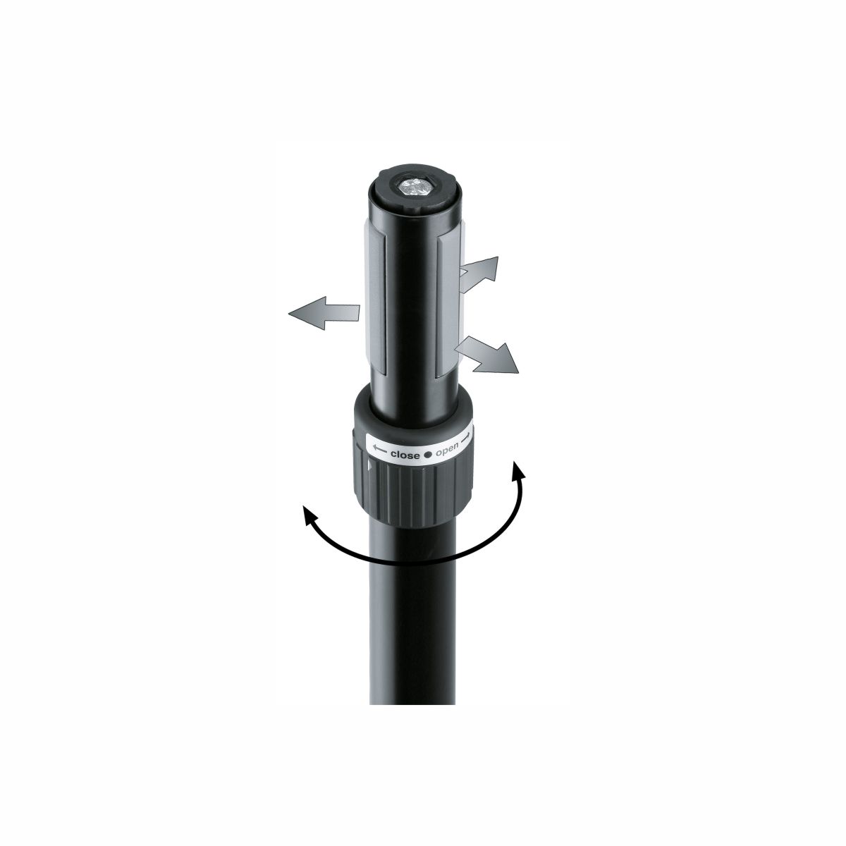 Felül egyedi, szabadalmaztatott táguló tüske található a hangfal szoros és holtjátékmentes illesztése érdekében. A műanyag táguló pofák csökkentik a rezgéseket a hangfal és a cső között. Könnyű kezelhetőség a szorítógyűrű segítségével.