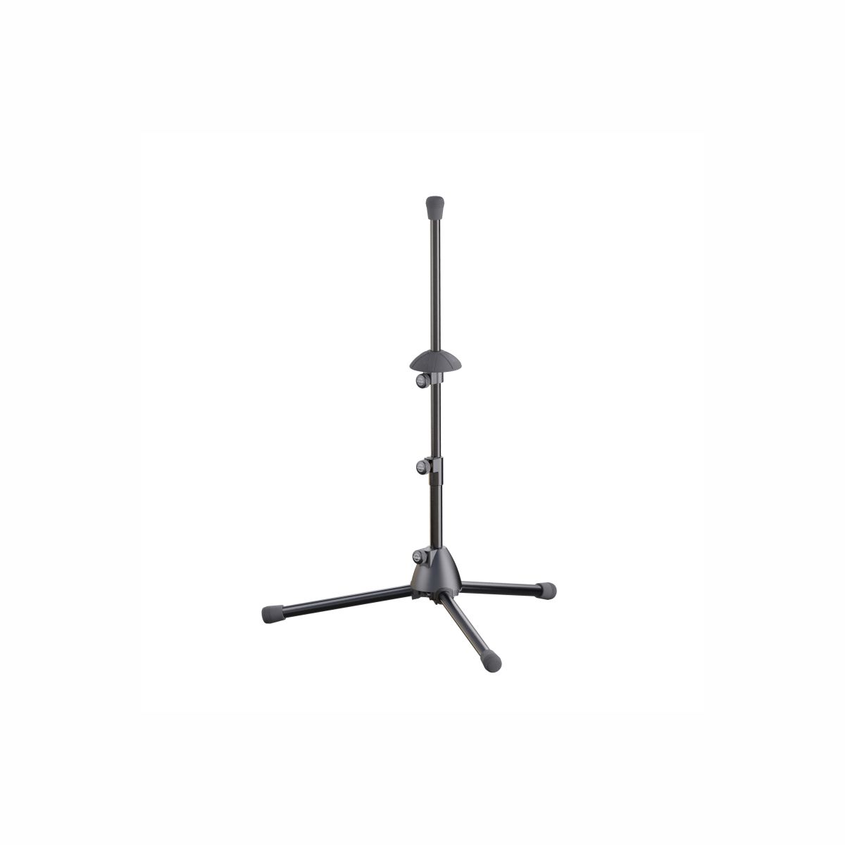 Kiváló minőségű, stabil állvány basszus trombitához és basszus szárnykürthöz. A masszív acélszerkezet biztosítja a billegésmentes használatot, és szállításhoz kompakt módon összecsukható. A hangszertartó elem magassága állítható, így a legkülönbözőbb modellekhez egyénileg igazítható.
