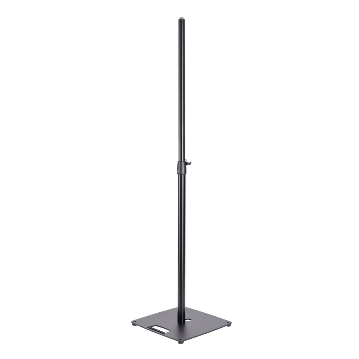 Esztétikus hangfal állvány lapos acéllemez talppal, hordozófogantyúval és kábelrendezővel. Az állvány alkalmas olyan helyeken is, ahol kevés a hely. A magasságot egy biztonsági tüskével rögzíthetjük és egy halk, holtjátékmentes rögzítőcsavarral szoríthatjuk meg. A rögzítő keskeny kialakítása helytakarékos szállítást tesz lehetővé és elegáns megjelenést biztosít. Az alkalmazható magasság 1.135 és 1.835 mm között van, és öt 140 mm-es fokozatban érhető el. A maximális terhelhetőség teljesen kihúzott állapotban 15 kg.