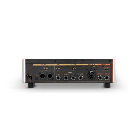 Kezelőszervek a hátlapon: erősítő terhelő impedancia kapcsolás, effekt szint (pro/hangszer), effekt loop vonalkimenet, effekt loop re-amp, földleválasztó kapcsoló, mikrofon/vonal bemeneti csillapító, fantomtáp, polaritás