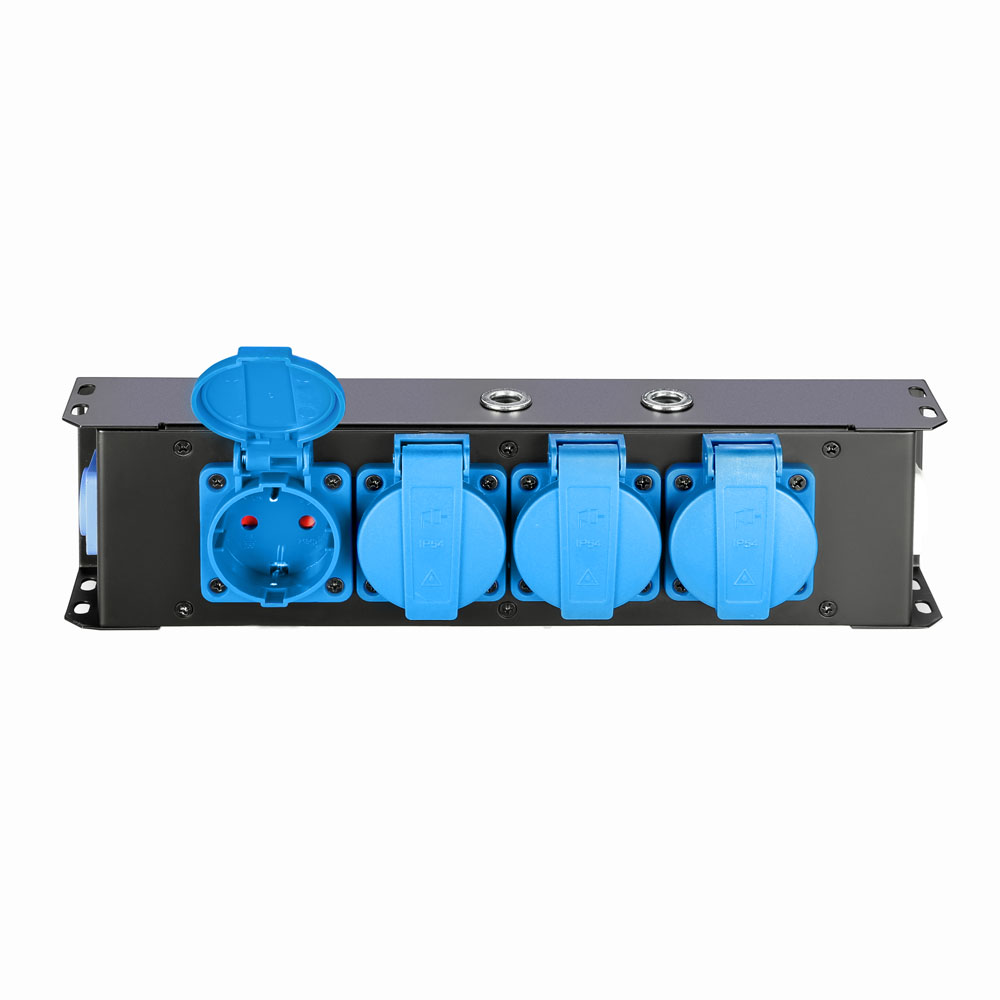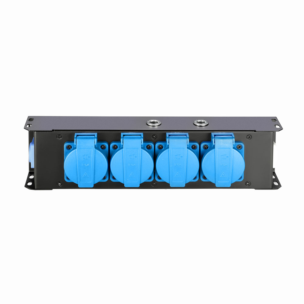 A teljes egészében fémből készült strapabíró készülékházon két M10 menetes csavarhüvely található, melyek segítségével az elosztó praktikusan felszerelhető a világításhídra, színpadi állványzatra.