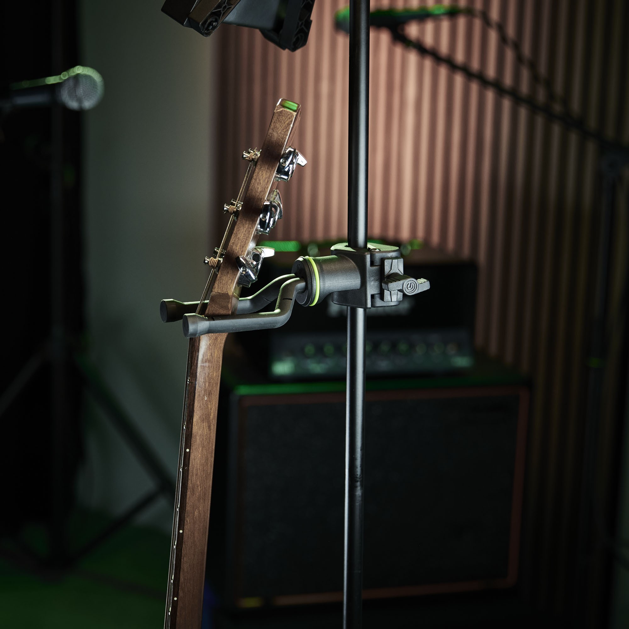 A GS MS 08 egy univerzális akasztó akusztikus gitárhoz, elektromos gitárhoz és basszusgitárhoz. Bármilyen állványra/rúdra felszerelhető, amelynek átmérője 15-35 mm, és önbeálló tartója bármilyen méretű és alakú fejhez alkalmazkodik. A GS MS 08 speciálisan kifejlesztett gumival van bevonva, amely megfelelő tartást biztosít a hangszernek, ugyanakkor nem károsítja a fényezést.