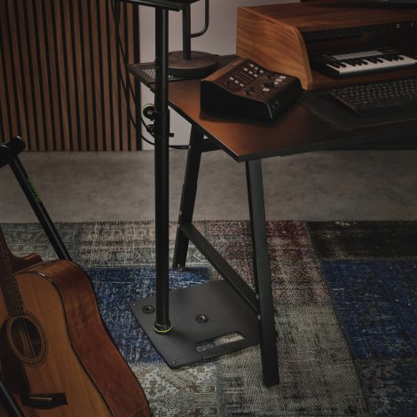 A Gravity SP 3202 CSB stúdiómonitor állvány négyszögletes acél talppal rendelkezik, amely közel 7 kg-os tömegével megfelelő stabilitást biztosít, és gumírozott fogantyúval rendelkezik a könnyű szállításhoz. Ezenkívül a talp két további M20-as menettel van ellátva a tartórúd excentrikus rögzítéséhez, ami nagyobb variációs lehetőséget biztosít.