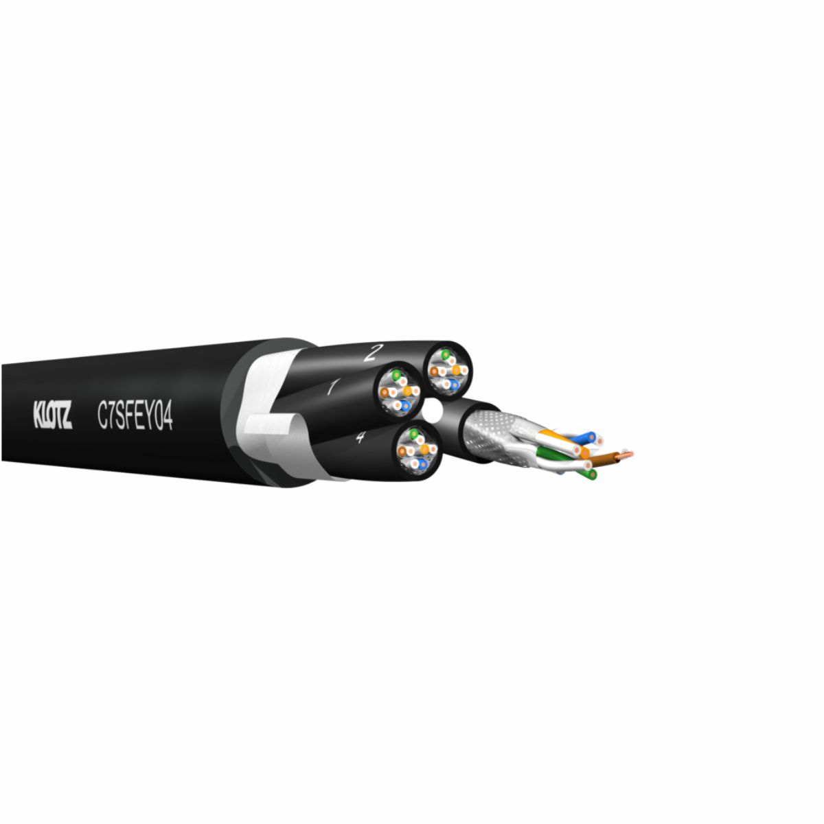 A C7SFEY04 multiCAT7 kábelt telepített alkalmazásokban és védett mobil üzemben történő adatátvitelhez 600 MHz-es frekvenciára tervezték, és így akár 10 Gbit/s adatátviteli sebességre is alkalmas 100 m-es kapcsolathosszig. Elsősorban 1000 Base-T és 10 GBase-T Ethernet alkalmazásokban történő adatátvitelre használják. Az egyenként 100 ohm impedanciájú négy adatvezeték négy sodrott párja AWG 23/1 tömör huzallal rendelkezik. A kettős árnyékolás (S/FTP) megbízhatóan megakadályozza az elektromágneses interferenciát. Megfelelő dugaszolócsatlakozóként a Telegärtner fém MFP8 IE sorozatot ajánljuk, amely RJ45SAT-FS cikkszámmal kapható. A MultiCAT7 multicore kábel tekercsben és szerelt kábelként is kapható kábeldobos és kábeldob nélküli kivitelben.