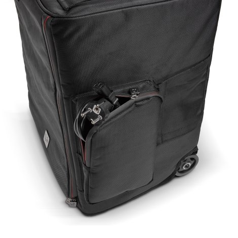 A huzat oldalain található két külső zseb bőséges helyet kínál a tartozékok, például a hálózati és XLR kábelek tárolására.