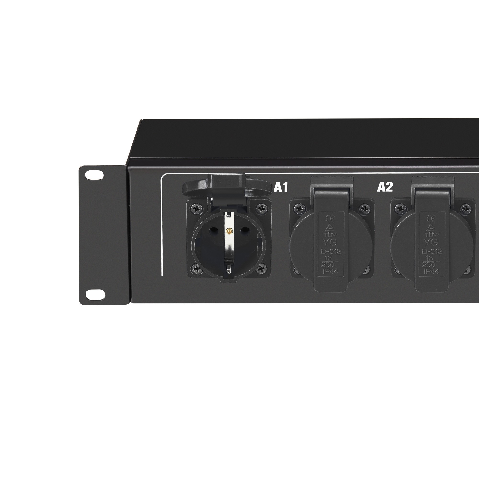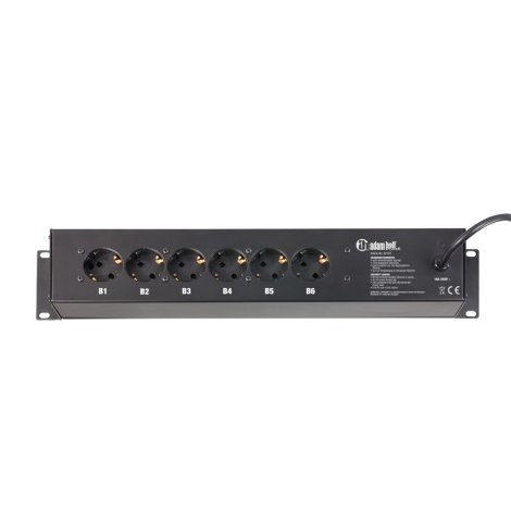 19"-os hálózati elosztó 2 U, 3 + 6 földelt aljzat, előlapon 2 kapcsoló, fekete