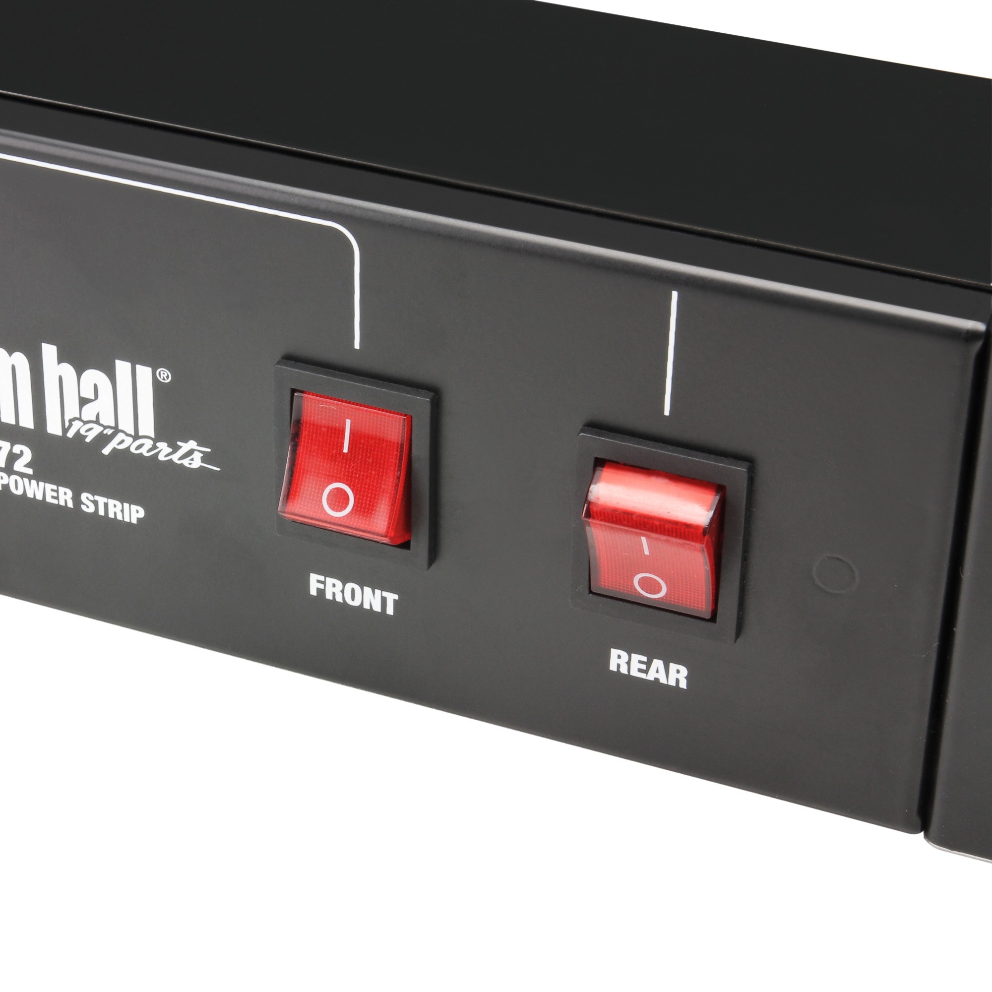 Az előlapon 2 világító kapcsoló az elő,- és hátlapi aljzatok külön kapcsolásához