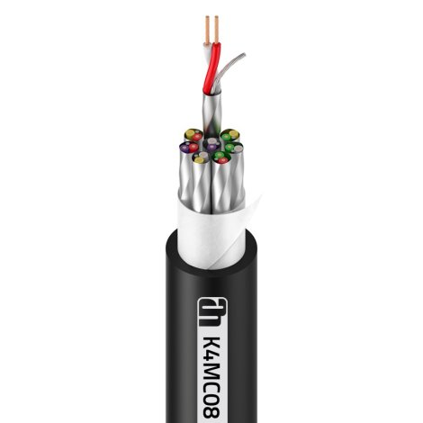 Robusztus, mégis rugalmas PVC köpeny, egyedileg árnyékoltt belső vezetőpárok csatornák számozásával és nagyon jó árnyékolással a speciálisan ehhez a kábelhez gyártott AL/PT fóliának köszönhetően. Ez a típus 2, 4, 8, 16 és 24 csatornás változatokban rendelhető.
