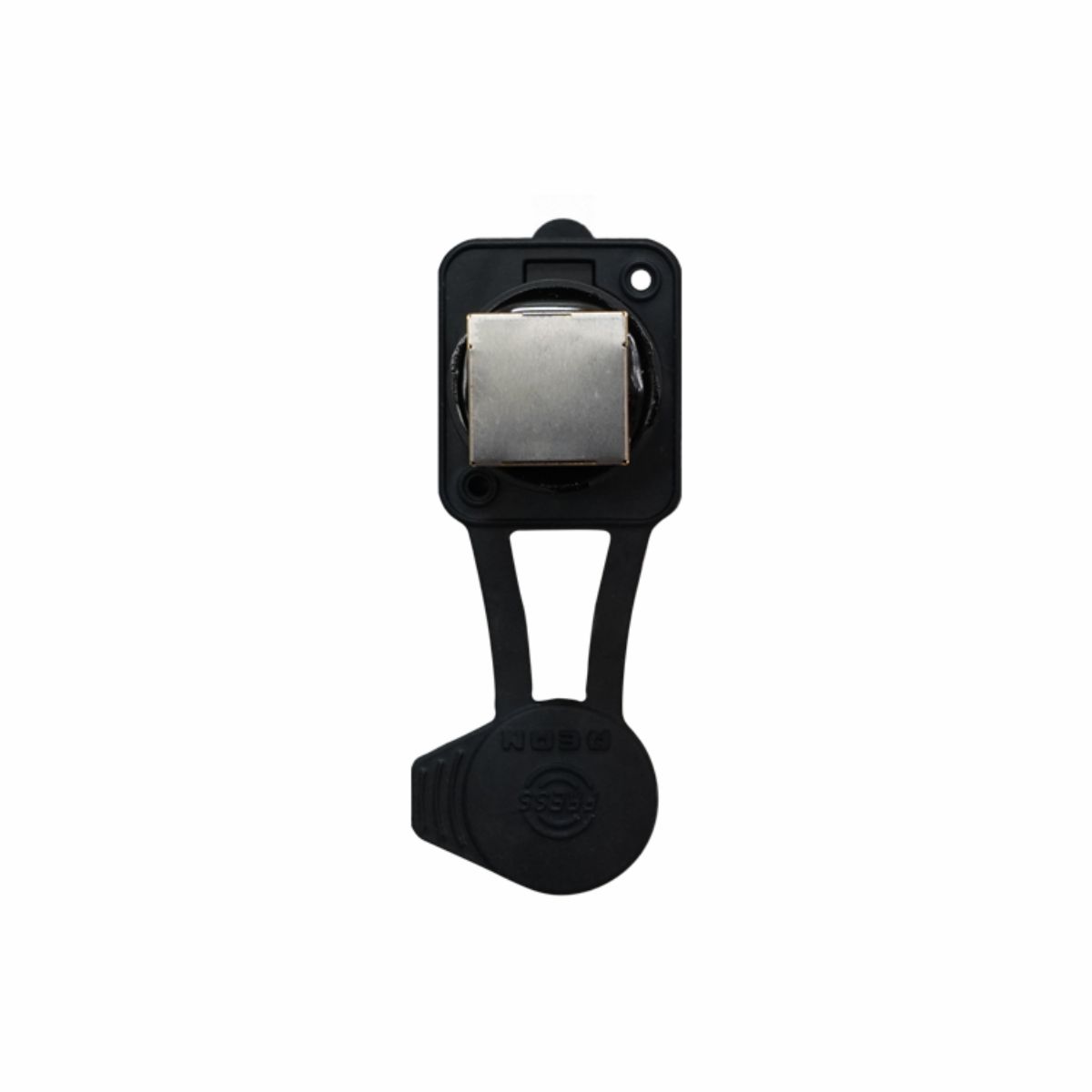 RJ45 átmenő csatlakozóaljzat reteszelhető fém D-házzal.