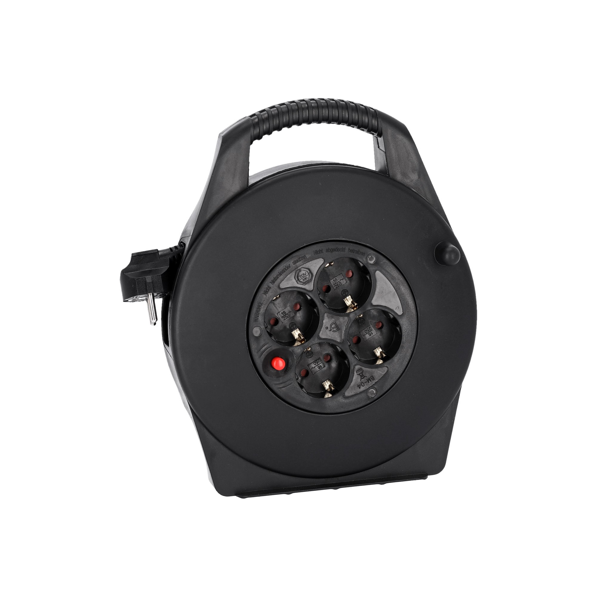 Ez a kicsi és kézreálló kábeldob 10 m hosszú PVC köpenyű (H05VV-F) tápkábellel van szerelve és 3 x 1,5 mm? belső kábel keresztmetszettel rendelkezik. Az ergonomikus fogantyú és a mindössze 1,5 kg-os összsúly, valamint a masszív dobtest teszi ezt a kis barátot hű társsá a mindennapokban