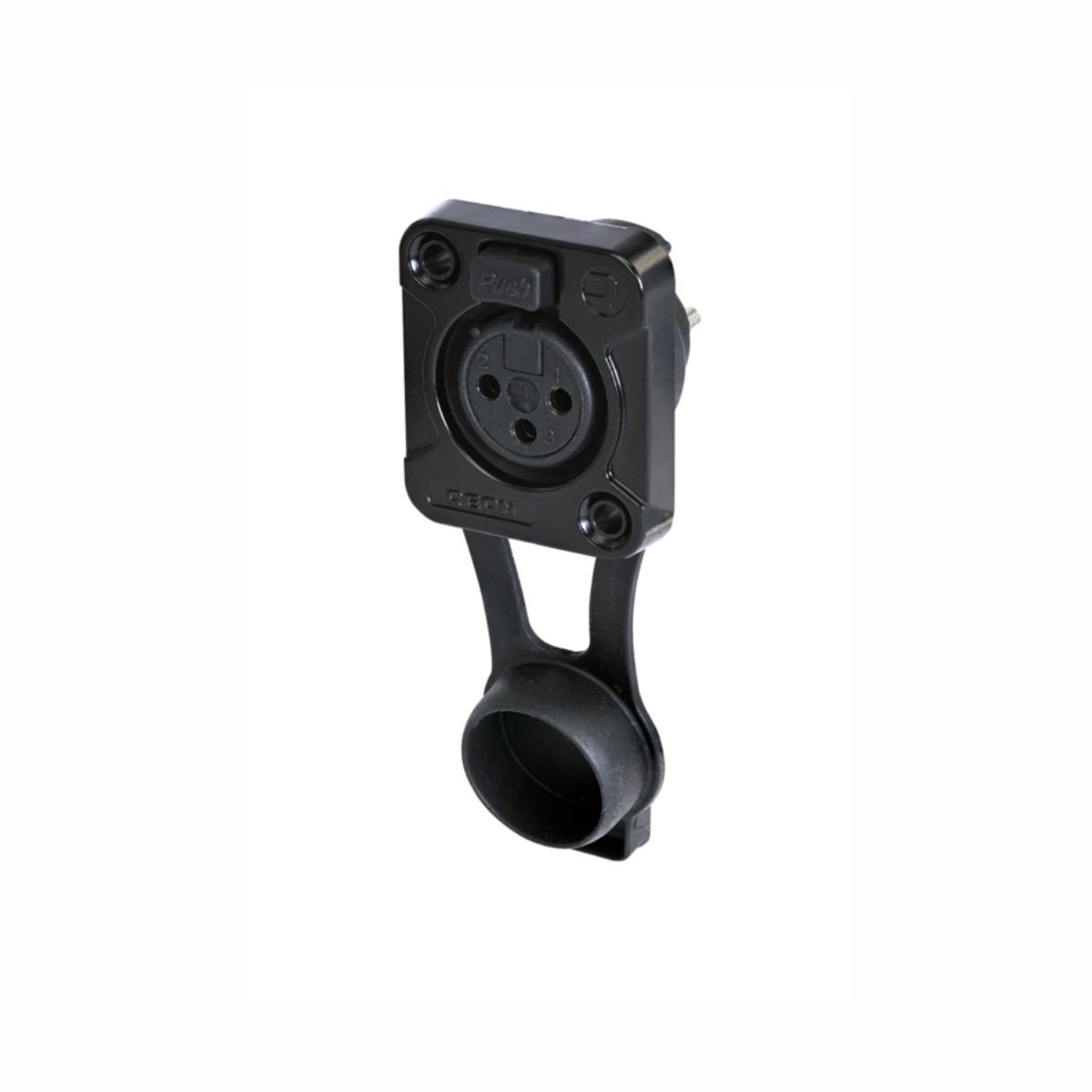 3 pólusú XLR aljzat, D ház, IP65, fekete
