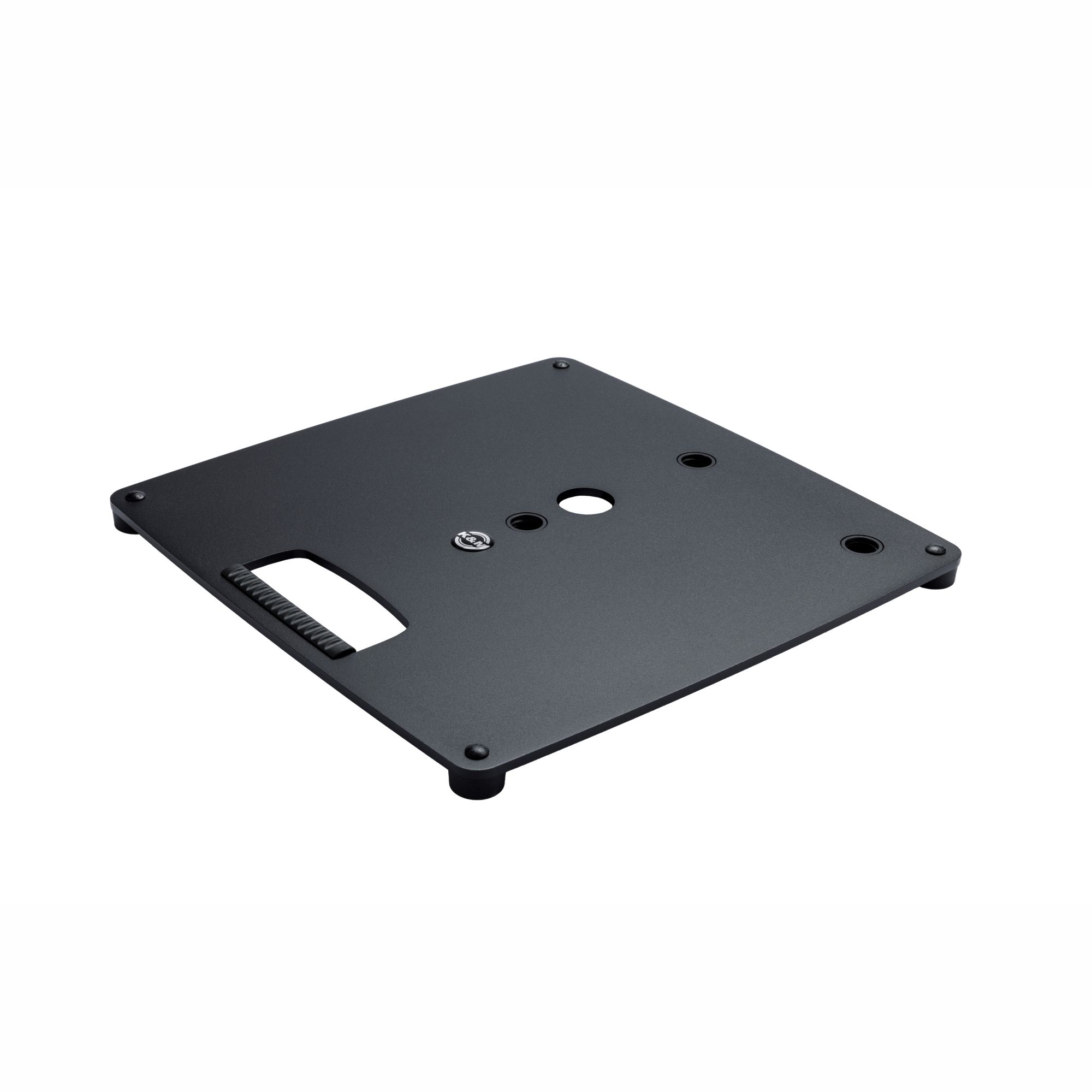Nehéz és tömör alaplap minden szokásos állványrúd-cső kombinációhoz M20-as menetes furatokkal. A felhasználástól függően három lehetőség van az állványrúd elhelyezésére. A középső és oldalsó pozíción kívül a sarokban is rögzíthető. Emellett praktikus hordozófüllel rendelkezik, kábelelvezető található rajta, masszív filcezett lábai vannak.