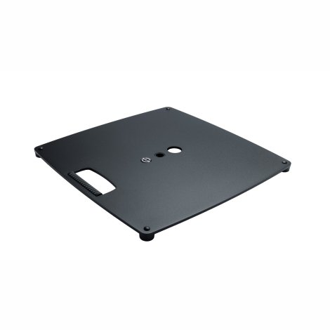 Nehéz és tömör alaplap minden szokásos állványrúd-cső kombinációhoz M20-as menetes furatokkal. A felhasználástól függően három lehetőség van az állványrúd elhelyezésére. A középső és oldalsó pozíción kívül a sarokban is rögzíthető. Emellett praktikus hordozófüllel rendelkezik, kábelelvezető található rajta, masszív filcezett lábai vannak.