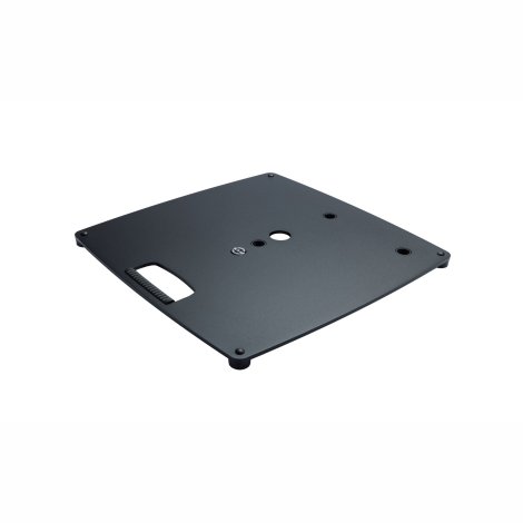 Nehéz és tömör alaplap minden szokásos állványrúd-cső kombinációhoz M20-as menetes furatokkal. A felhasználástól függően három lehetőség van az állványrúd elhelyezésére. A középső és oldalsó pozíción kívül a sarokban is rögzíthető. Emellett praktikus hordozófüllel rendelkezik, kábelelvezető található rajta, masszív filcezett lábai vannak.