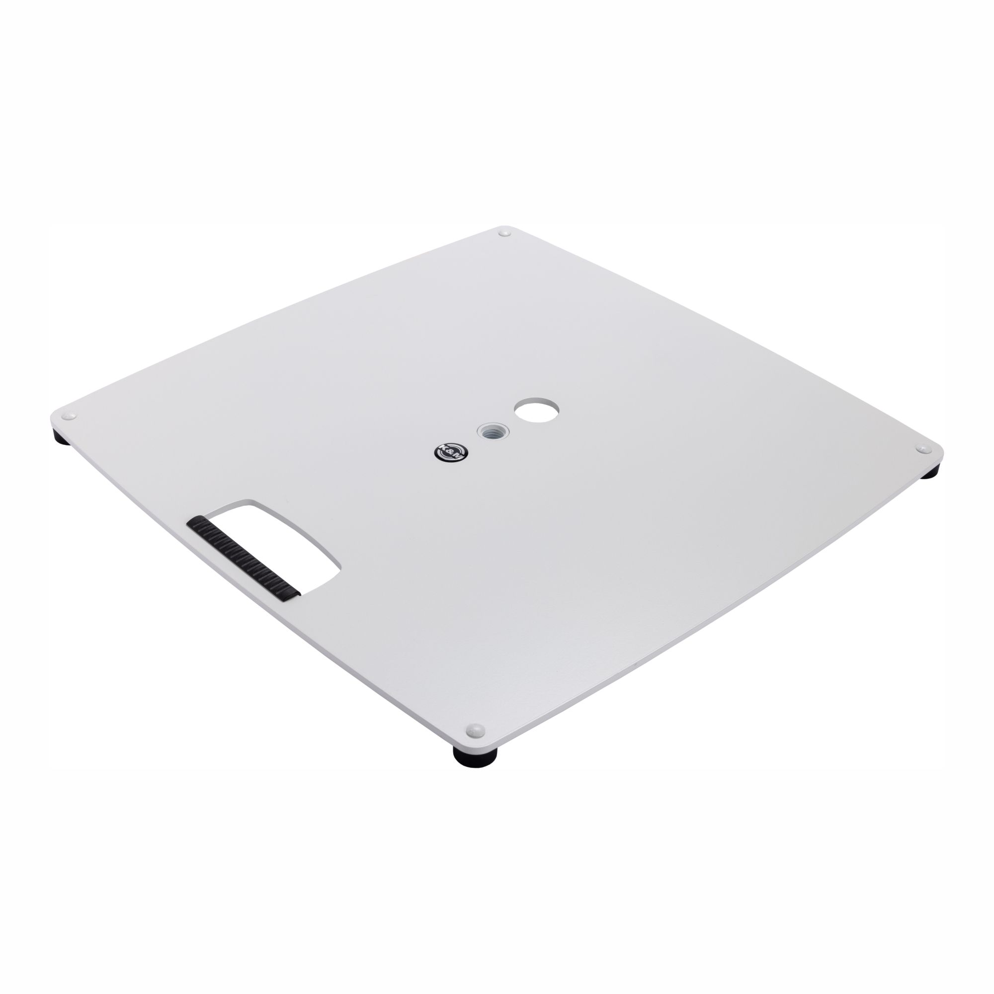 Nehéz és tömör alaplap minden szokásos állványrúd-cső kombinációhoz M20-as menetes furatokkal. A felhasználástól függően három lehetőség van az állványrúd elhelyezésére. A középső és oldalsó pozíción kívül a sarokban is rögzíthető. Emellett praktikus hordozófüllel rendelkezik, kábelelvezető található rajta, masszív filcezett lábai vannak.