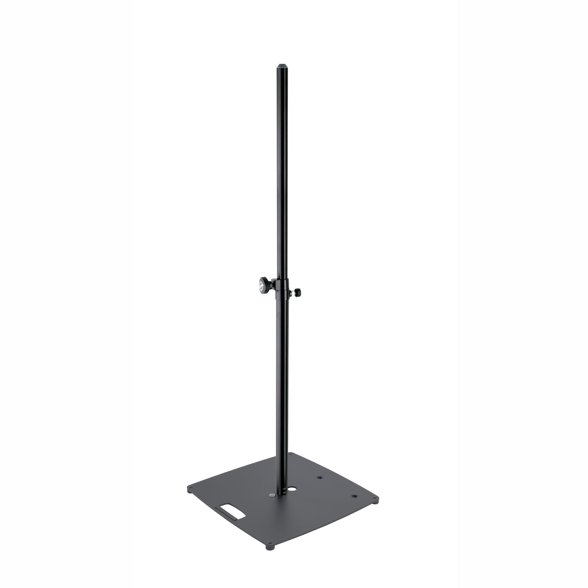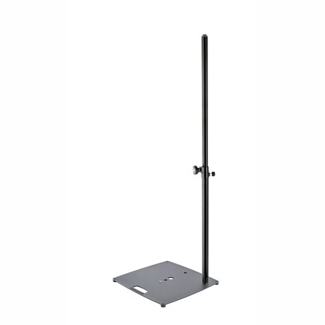 A legerősebb hangszóró állványunk helytakarékos alaplappal. A nehéz, lapos acéllemeznek (550 x 550 mm) köszönhetően az állvány ideális ott, ahol kevés a hely. Az igényektől függően háromféleképpen helyezhető el az oszlop, a középső és oldalsó pozíción kívül a sarokban is rögzíthető. Emellett praktikus hordozófüllel rendelkezik, kábelelvezető található rajta, masszív filcezett lábai vannak.