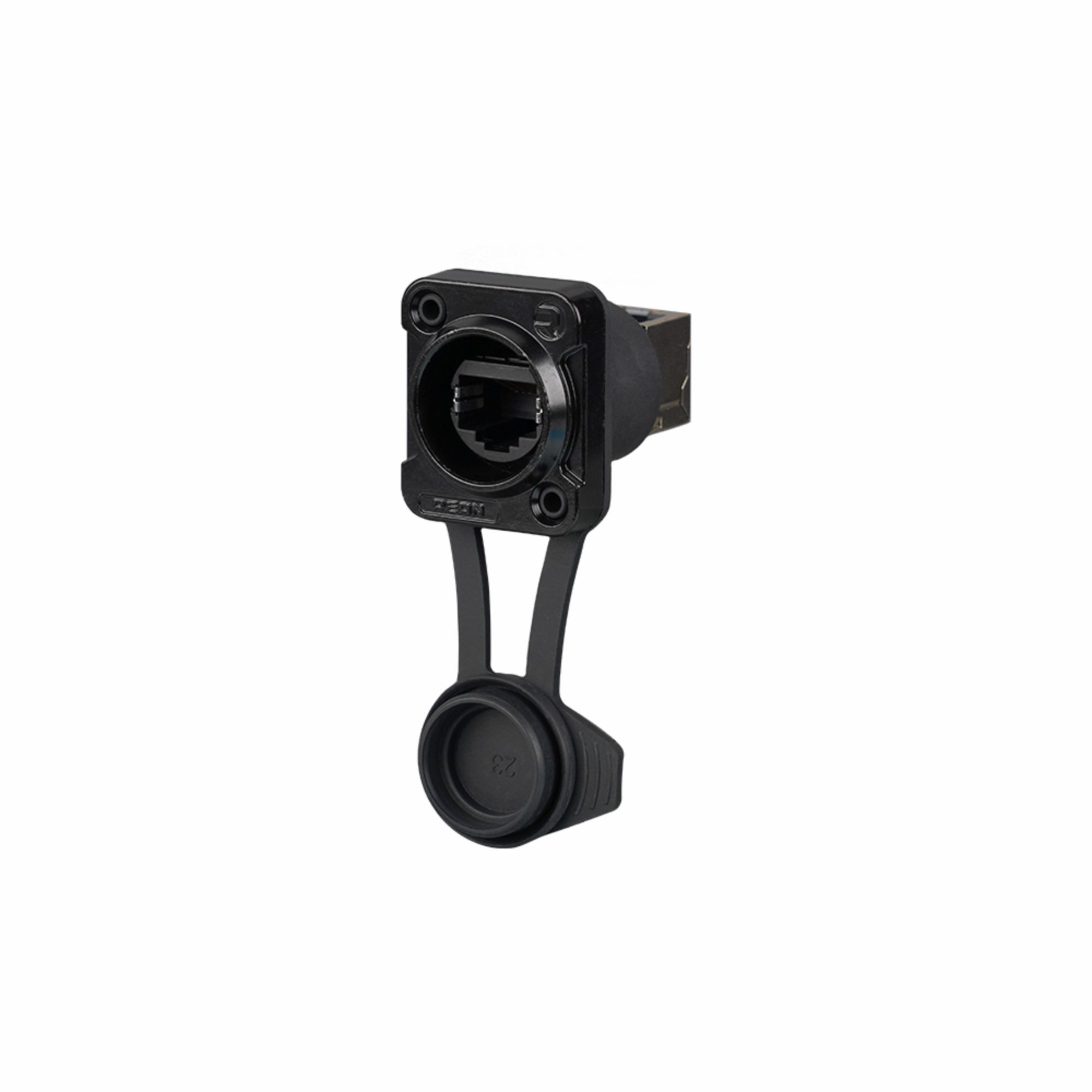 REAN RRE8F-Z-111S RJ45 átvezető 90 fokos RJ45 háttérrel, retesz nélküli D ház, IP65, légmentes (Airtight) (Airtight), fekete, BULK