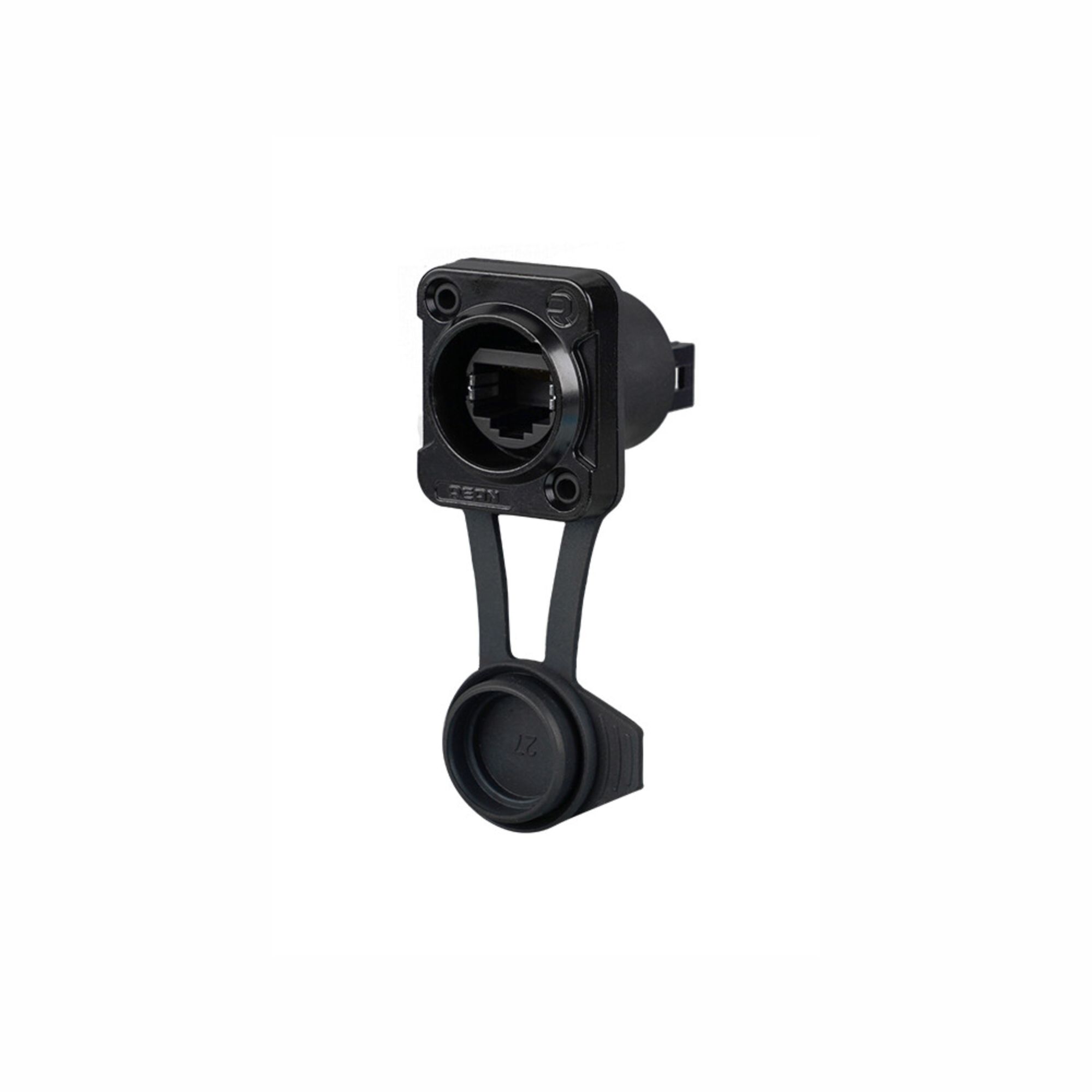 REAN RRE8F-Z-112S RJ45 átvezető 2x4 érintkezős háttérrel, retesz nélküli D ház, IP65, légmentes (Airtight) (Airtight), fekete, BULK