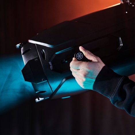 - Dupla Slot-in rendszer az írisz- és gobótartó sokoldalú kombinációjához, manuális forgatással