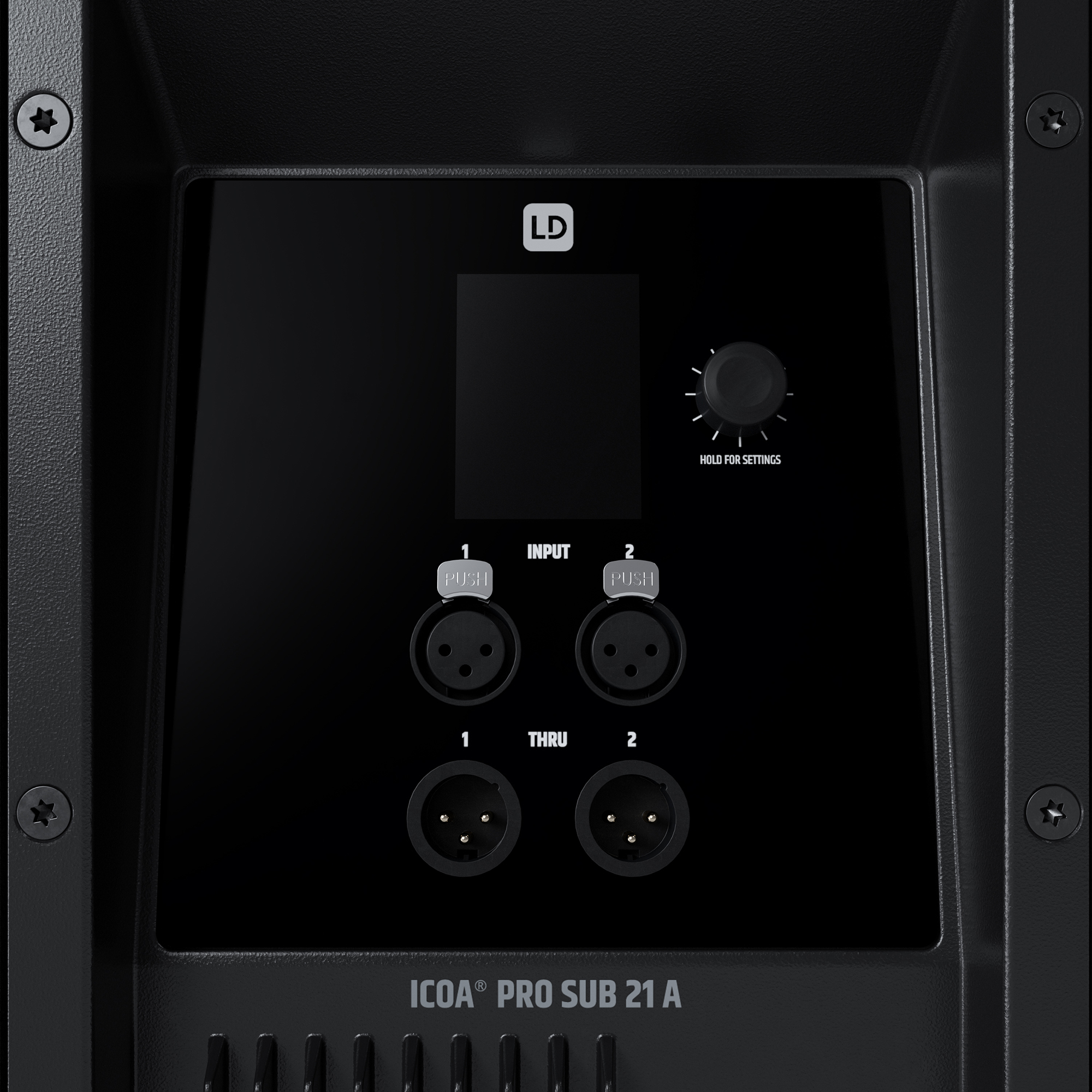 Az ICOA PRO SUB 21 A központi eleme a 4,5?-os neodímium motorral ellátott, rendkívül erős 21?-os mélysugárzó. Hosszú membránútjának és pontosan hangolt felfüggesztésének köszönhetően feszes, száraz és precíz basszust biztosít.