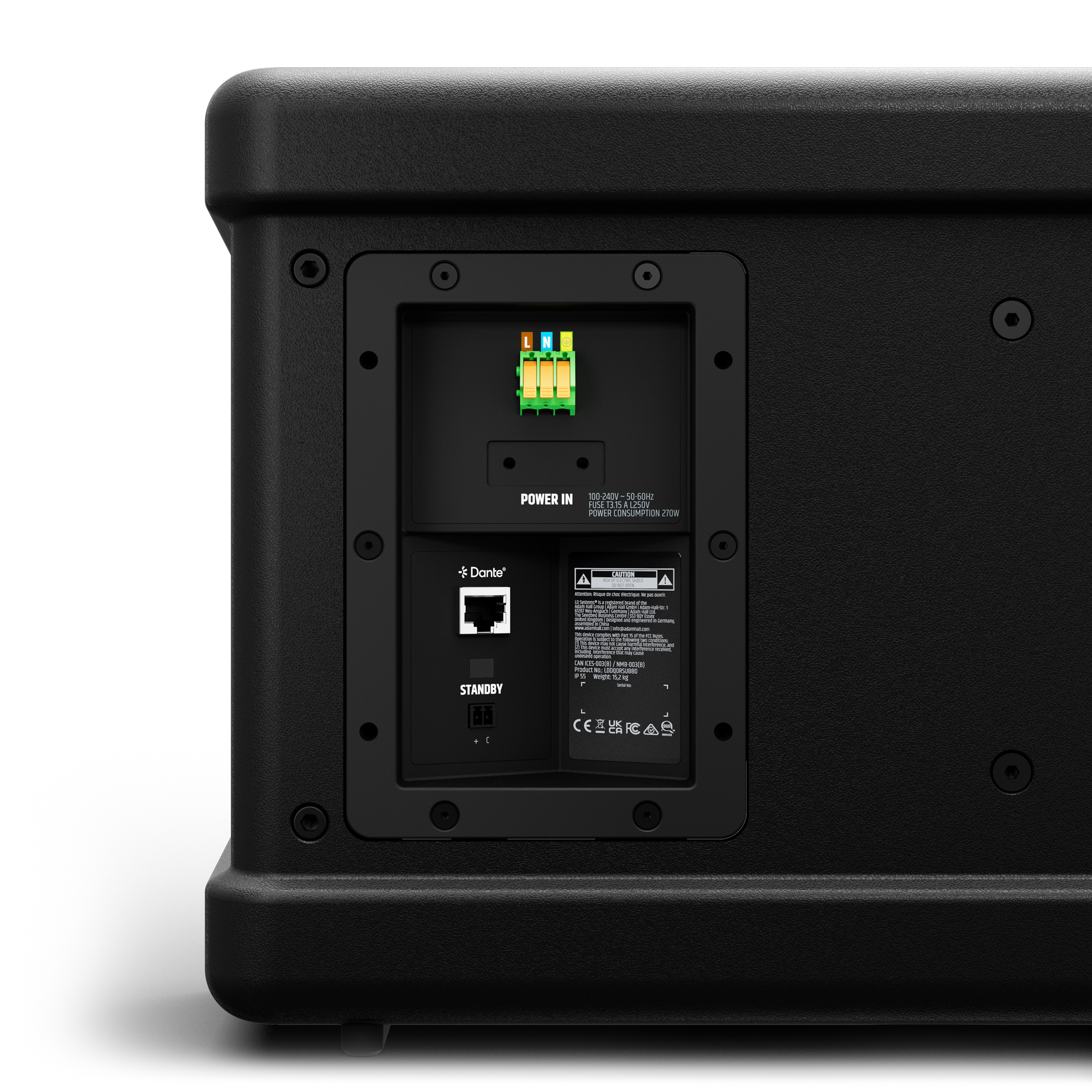 A DQOR® SUB 8 D egyedülálló módon az egyetlen kültéri besorolású Dante mélynyomó.