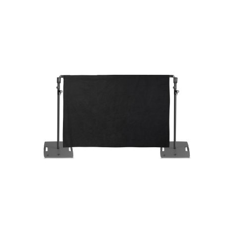 Egyszerűen helyezzük az adaptert az állványra, és rögzítsük a teleszkópos rudat úgy, hogy a rögzítőcsavarokat az adapter lyukaiba illesztjük. A PAD C B 2 fekete Molton függöny mérete 2,05 m x 1,20 m, és kényelmes tépőzáras szalaggal rendelkezik, amelynek segítségével könnyedén rögzíthető a keresztrúdra.