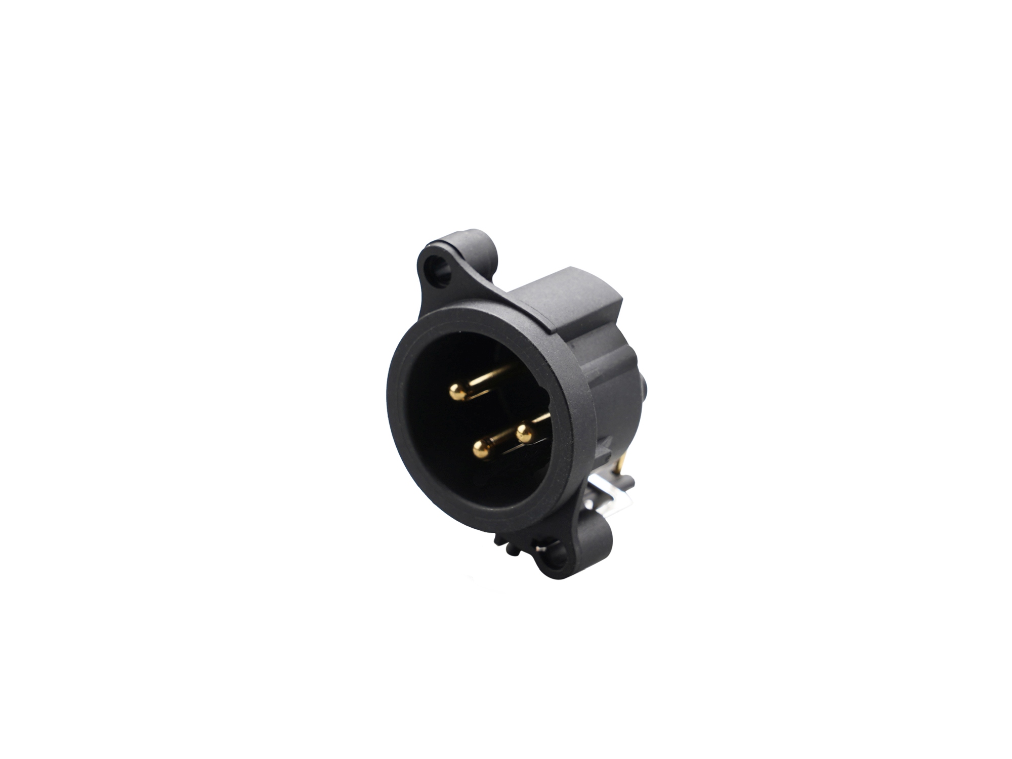 3 pólusú XLR dugó vízszintes nyákhoz, ezüstözött érintkező, M3 csavarral szerelhető D ház