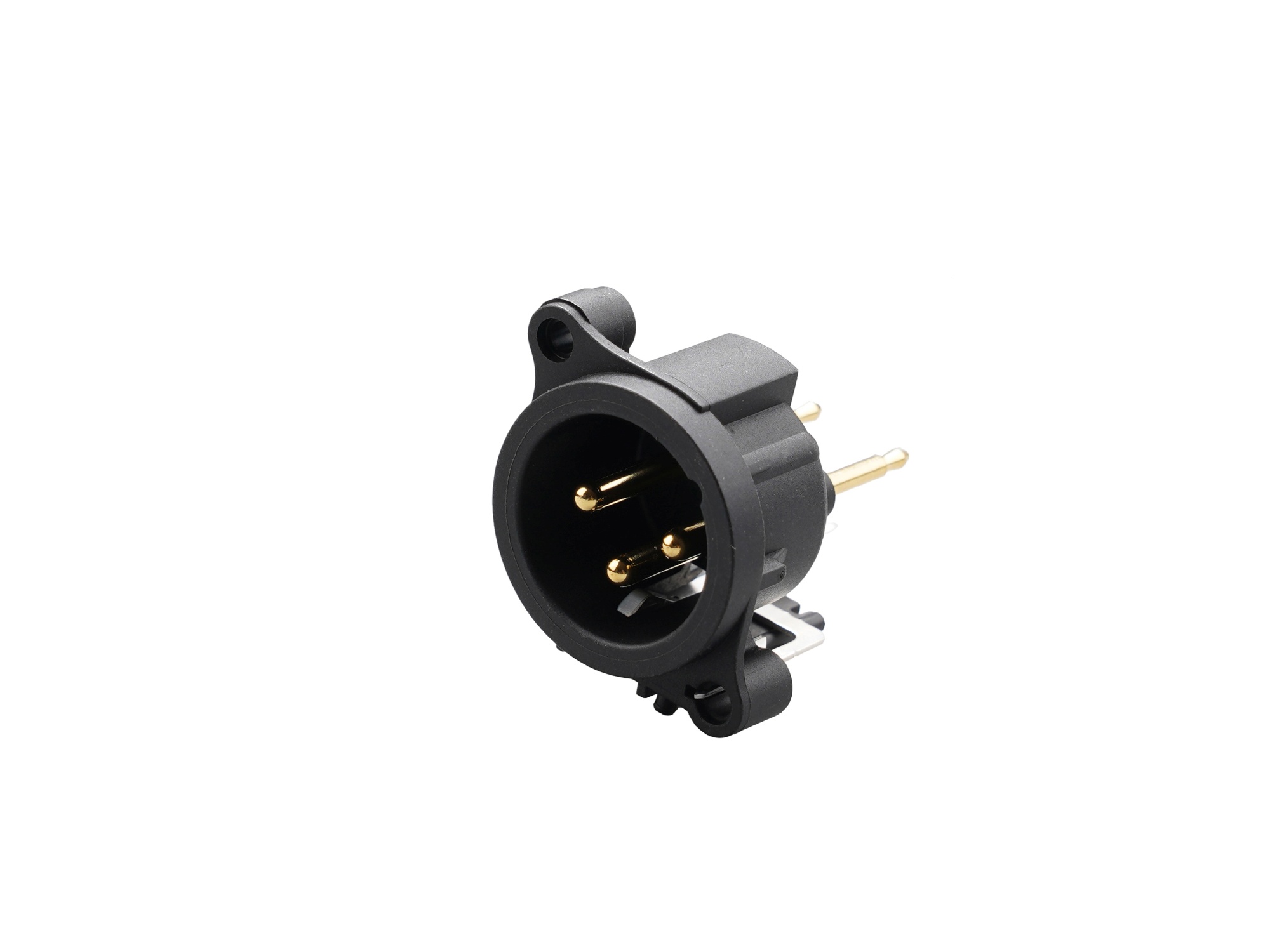 3 pólusú XLR dugó függőleges nyákhoz, külön GND és ház érintkezővel, retesz nélküli B ház