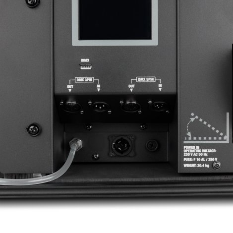 A rendkívül hatékony, mikroprocesszorral vezérelt ködképző készülék tartós, ausztenites rozsdamentes acélból készült párologtató csővel és automatikus öntisztító rendszerrel rendelkezik, amely megakadályozza a lerakódások kialakulását és minimalizálja a karbantartási igényt. A gőzkibocsátás újrahevítés nélkül, fokozatmentesen szabályozható, a ventilátor sebességéhez hasonlóan 1%-os lépésekben, bármilyen méretű színpadhoz és helyiséghez igazodva.