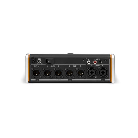 Két sztereó kimenet és egy további monó kimenet lehetővé teszi a hangszórók rugalmas vezérlését, például fő monitorok, közeltéri rendszerek vagy mélynyomók esetében. A nagy analóg hangerőszabályzó a kimeneti szint pontos szabályozását biztosítja.