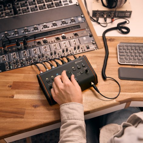 A beépített tápegység biztosítja a Bluetooth, a fejhallgató-erősítő és a harmadik kimenet áramellátását. Maga a jelút teljesen analóg marad, ami késleltetésmentes és tiszta hangvisszaadást tesz lehetővé. A MONICON L megbízható jelkezelést, átlátható hangvezérlést és intuitív felhasználást nyújt.
