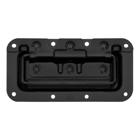 Az Adam Hall 340822BLK rúgós fül kompakt és robusztus megoldás a professzionális flight case ládák készítéséhez. A PVC-bevonatú markolat kényelmes fogást és fokozott hordozási kényelmet biztosít. Az integrált rugós mechanizmus megbízhatóan tartja a markolatot nyugalmi helyzetben, így megakadályozza a bosszantó zörgést szállítás közben. A lapos, süllyesztett, mindössze 8 mm mély tálca helyet takarít meg, míg a fekete horganyzott acél ház biztosítja a felület tartósságát és korrózióvédelmét. Az 5,1 mm átmérőjű rögzítőfuratoknak köszönhetően az Adam Hall 340822BLK fül stabilan és biztonságosan rögzíthető, így ideális kis és közepes méretű szállítótáskákhoz és ládákhoz.