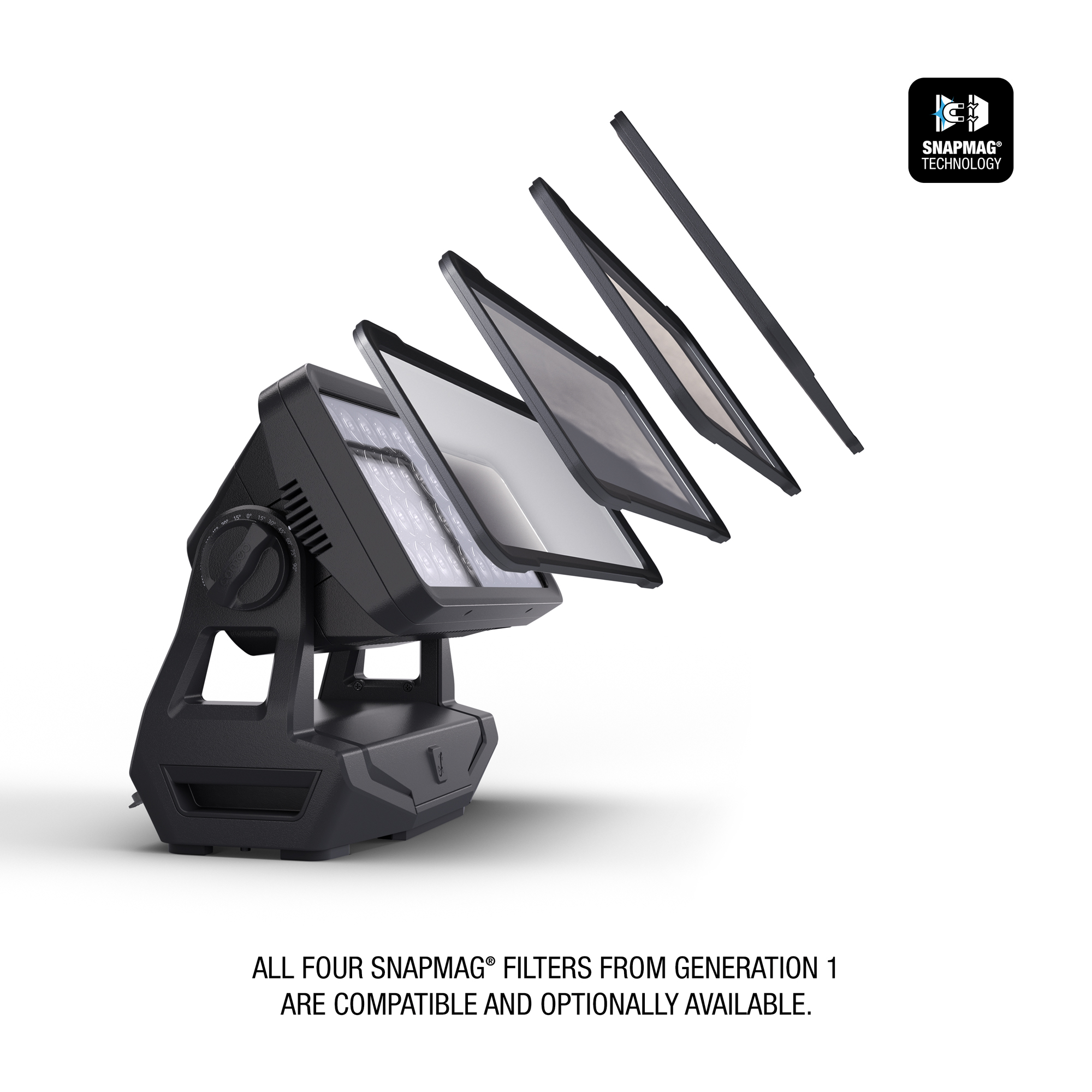 A Cameo ZENIT® W600 G2 660 W-os LED-motorjával, 32000 lumen fényáramával, 98-as CRI-jével és 95-ös TLCI-jével – a színházi és tévéprodukcióktól a nagyszabású fesztiválszínpadokig, minden felhasználási területen – nagyobb teljesítményt, pontosságot és rugalmasságot kínál elődjénél. A 40 x 50 W-os RGBALC LED-ekkel és az integrált XColour™ technológiával felszerelt ZENIT® W600 G2 rendkívül precíz, kalibrált színkeverő rendszerrel rendelkezik, amely folyamatos és természetes színspektrumot hoz létre. A függőleges szegmensvezérlésnek, a több egység zökkenőmentes csoportosításának (függőlegesen és vízszintesen egyaránt) és az új SnapMag® FX elektronikus frost funkciónak köszönhetően, amely lehetővé teszi a 18°-ról 54°-os sugárzási szög közötti gyors váltást, a lámpatest maximális kreatív szabadságot kínál. A mindennapi használat során a W600 G2 kivételesen praktikusnak bizonyul: mindössze 12,9 kg súlyával, ergonomikus felső fogantyújával, optimálisan elhelyezett biztonsági fedeleivel és IP65-ös védelemmel megbízható társ a gyors felszereléshez és a robusztus kültéri használathoz. Az új Cameo Connect alkalmazással a lámpatestek gyorsan és vezeték nélkül konfigurálhatók NFC-n keresztül – ideális kis- és nagyszabású produkciókhoz egyaránt. Ezenkívül az alkalmazás közvetlen hozzáférést biztosít az Adam Hall szervizportálhoz, beleértve a hibadiagnosztikát, a szupport funkciókat és a firmware-frissítéseket a hatékony eszközkezelés érdekében. A maximális befektetési biztonság érdekében a ZENIT® W600 G2 teljes mértékben kompatibilis a G1 sorozat összes szűrőjével és tartozékával. Legacy módban is működtethető, lehetővé téve a G1 és G2 egységek azonos színekkel, megjelenéssel és teljesítménnyel történő együttes használatát.