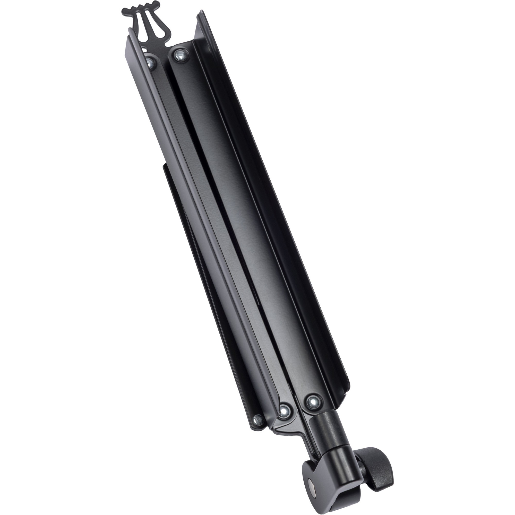 A K&M sikeres 10065-ös modelljén alapuló, összecsukható kottatartó tálca. A masszív és bevált kottatartó felület most integrált 3/8"-os menetes csatlakozással rendelkezik, így pillanatok alatt bármilyen szóló mikrofonállványra rögzíthető. Az acél kottatartó mérete 485 × 240 × 42 mm.