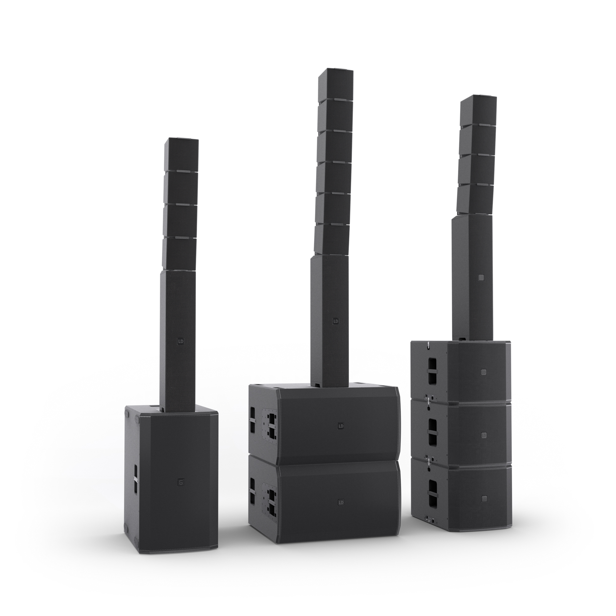 Ground stack (talajra épített) konfigurációban az torony kialakítás lényegesen magasabb rendszerépítést tesz lehetővé, ami jobb vetítést és egyenletesebb lefedettséget eredményez a távoli hallgatói zónákban.