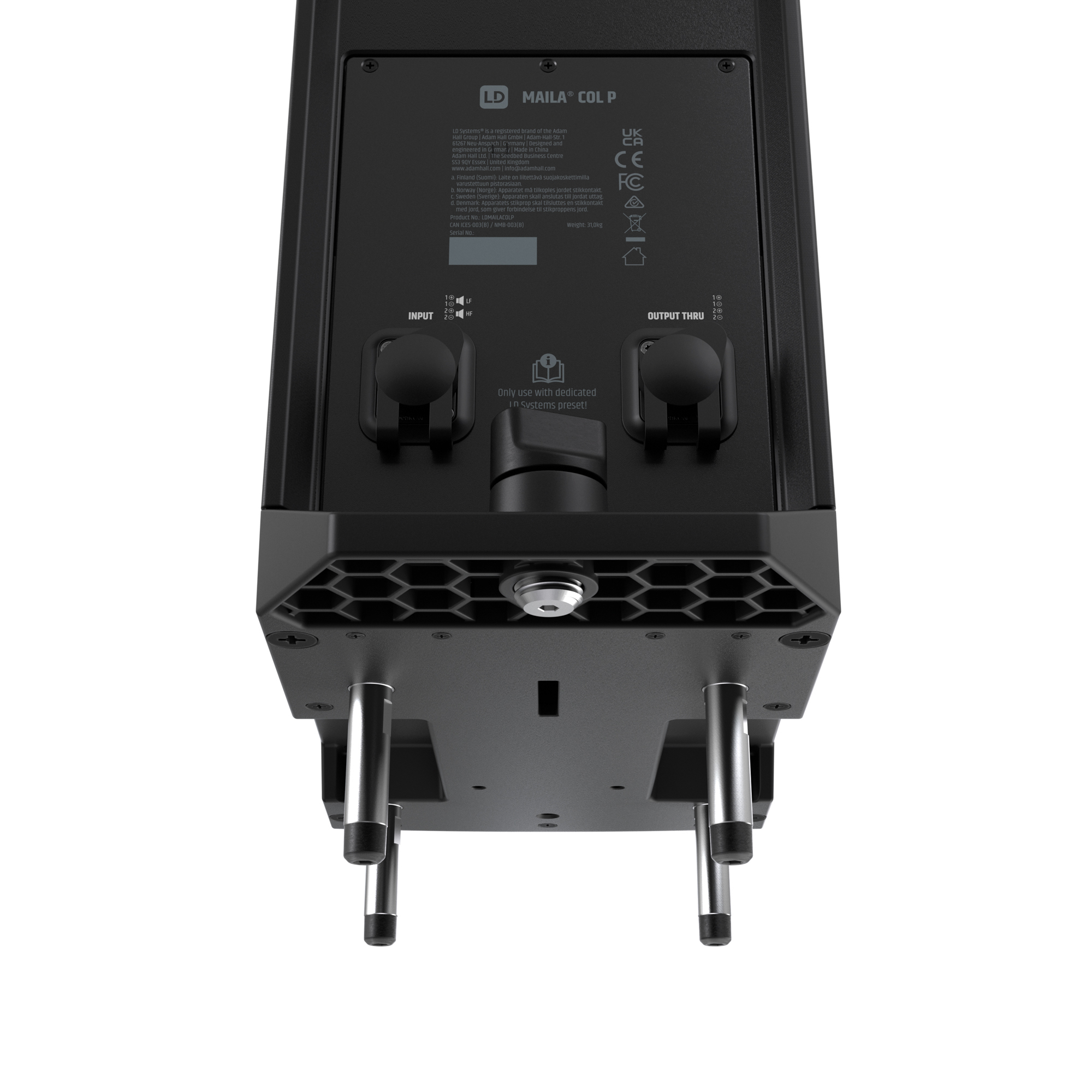 Függesztett alkalmazásban a MAILA COL P karcsú, vizuálisan diszkrét array-alapot képez, amely akár nyolc MAILA SAT egységgel is tisztán integrálható. A közvetlen SmartLink+ csatlakoztatás gyors és rendezett összeépítést tesz lehetővé modulok közötti patch kábelek nélkül, így támogatja a letisztult, skálázható rendszerkialakítást a kompakt rendezvényhangosítástól egészen a nagyobb helyszínekig és fix telepítésekig.