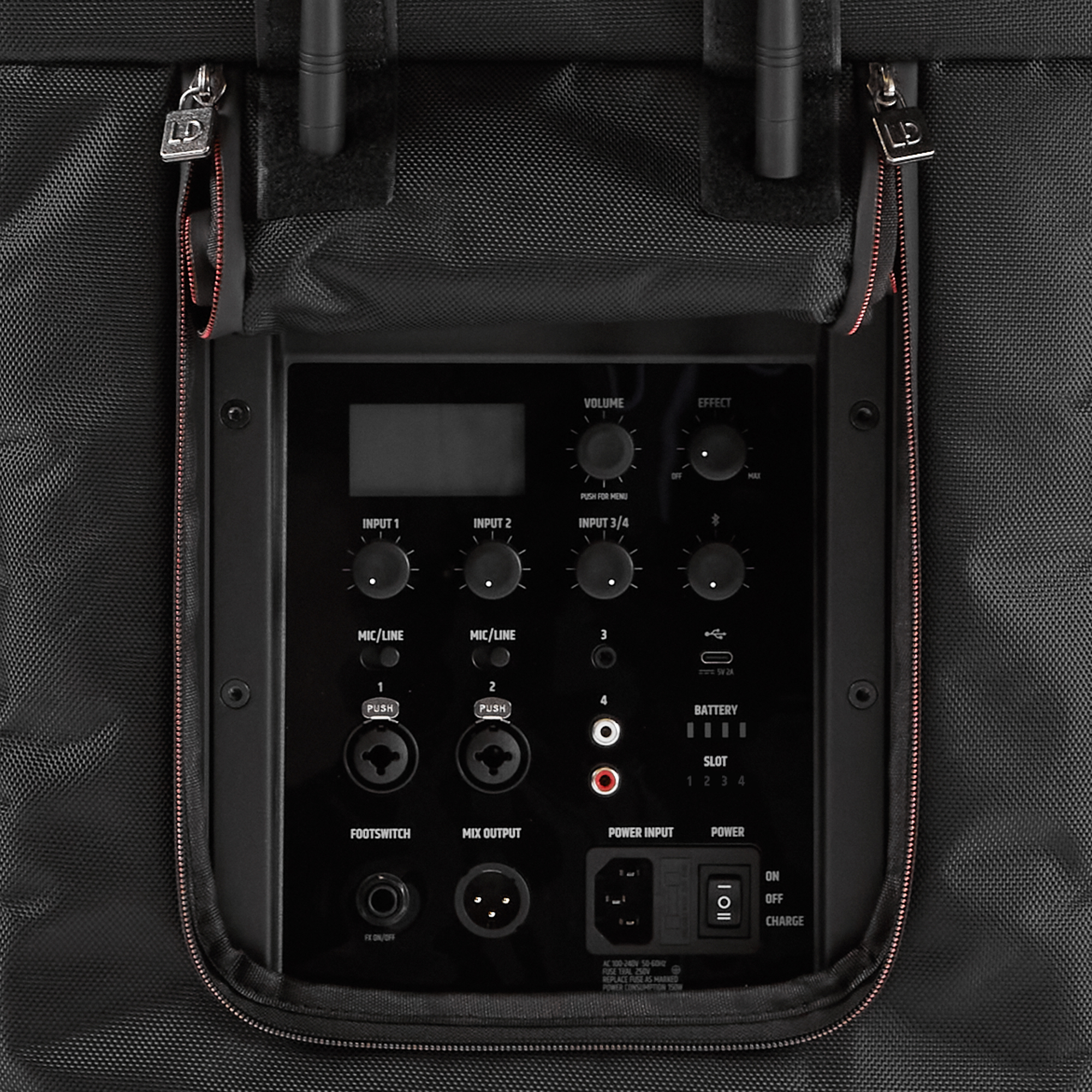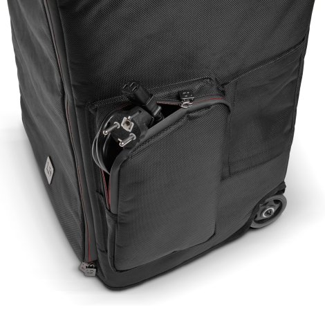 A huzat oldalain található két külső zseb bőséges helyet kínál a tartozékok, például a hálózati és XLR kábelek tárolására.