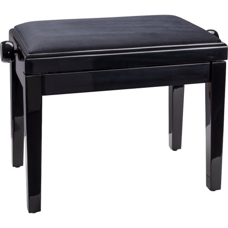 Ez a klasszikus zongoraszék tömör fából készült, magasfényű fekete felülettel, fekete bársony kárpitozással. Magas minőségű anyagok felhasználásával, a legkorszerűbb technológiával gyártották, a szék magassága könnyen állítható, hogy a játékos számára ideális ülőpozíciót biztosítson. Vonzó kialakításának és kiemelkedő tartósságának köszönhetően a szék ideális társ különféle helyiségekbe – az osztálytermektől és stúdióktól a koncerttermeken és színpadokon át. A szintezhető lábak biztosítják a stabil és billegésmentes pozíciót.