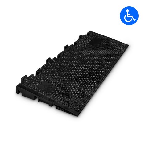 A „megközelíthetőség” az elmúlt néhány évben fokozott figyelmet kiváltó témává vált az állami hatóságok és rendezvényszervezők körében. A legelterjedtebb kábelvédő rendszerekkel gyakran kompromisszumra kényszerülnek az akadálymentes megközelíthetőség és a forgalmi teherbírás viszonyában. Mindez nem érvényes a Defender 2DM esetében: mindegyik középső szekció kiegészíthető egy 6°-os emelkedésű akadálymentes rámpával, amelyen minden probléma nélkül át lehet hajtani. A lapos emelkedési szög a kerekesszéket használók számára is könnyű áthajtást tesz lehetővé a kábelvédőn. Emellett olyan stabil, hogy villástargoncák és teherautók is áthaladhatnak rajta.