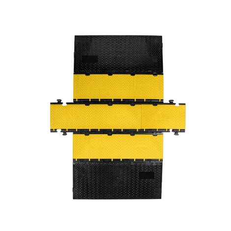 A rendszer hossza és szélessége bővíthető, így könnyű és biztonságos megközelítést garantál azokon a területeken is, ahol öt csatorna kevésnek bizonyul, például áramfejlesztő generátorok és FOH keverőpultok közelében. A hang-, fény- és tápkábelek önállóan, problémamentesen és biztonságosan fektethetők le. A középső szekciók kialakítása minden irányból szimmetrikus az összeszerelés megkönnyítése érdekében, tehát egyáltalán nem kell keresgélni a megfelelően illeszkedő darabot. Így szerelési rajzra sincs szükség. A szimmetrikus összeállítás kiváló hosszirányú és oldalirányú stabilitást nyújt a középső szekciók és rámpák elrendezésével. Ez azt is jelenti, hogy nincsenek laza alkatrészek, amelyet könnyen elveszíthetünk, például adapterek és csavarkulcsok. A csatlakozások úgy lettek kialakítva, hogy teret engedjenek a legegyszerűbb összeállításnak, mégis nagyfokú stabilitást biztosítsanak. A rámpák hosszanti csatlakozásánál például egy kis kiálló rész található, amely a helyére pattan, ha felülről megnyomjuk. Az elemeket nem szükséges újból felemelni azután, hogy a középső szekciót csatlakoztattuk. Továbbá a rámpák ergonomikus fogantyúval rendelkeznek a könnyebb kezelés érdekében.