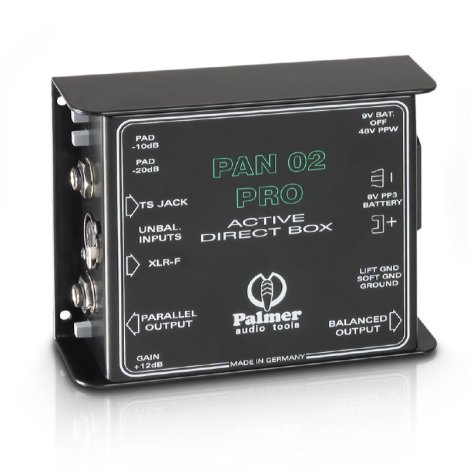 A Palmer PAN02 PRO bővített funkciókkal rendelkező aktív DI-box. Ezek közé tartozik az aszimmetrikus XLR bemenet, a háromfokozatú (-10, -20, -30 dB-es) osztókapcsoló, valamint a kapcsolható 12 dB-es gain és a +20 dBu maximális kimeneti feszültség.
