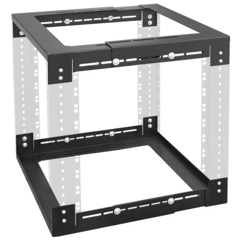Az alsó és felső elem továbbá négy darab kívánt magasságú racksíng használatával könnyen és gyorsan építhetünk erős, rezgéscsillapítható belső rackkeretet.